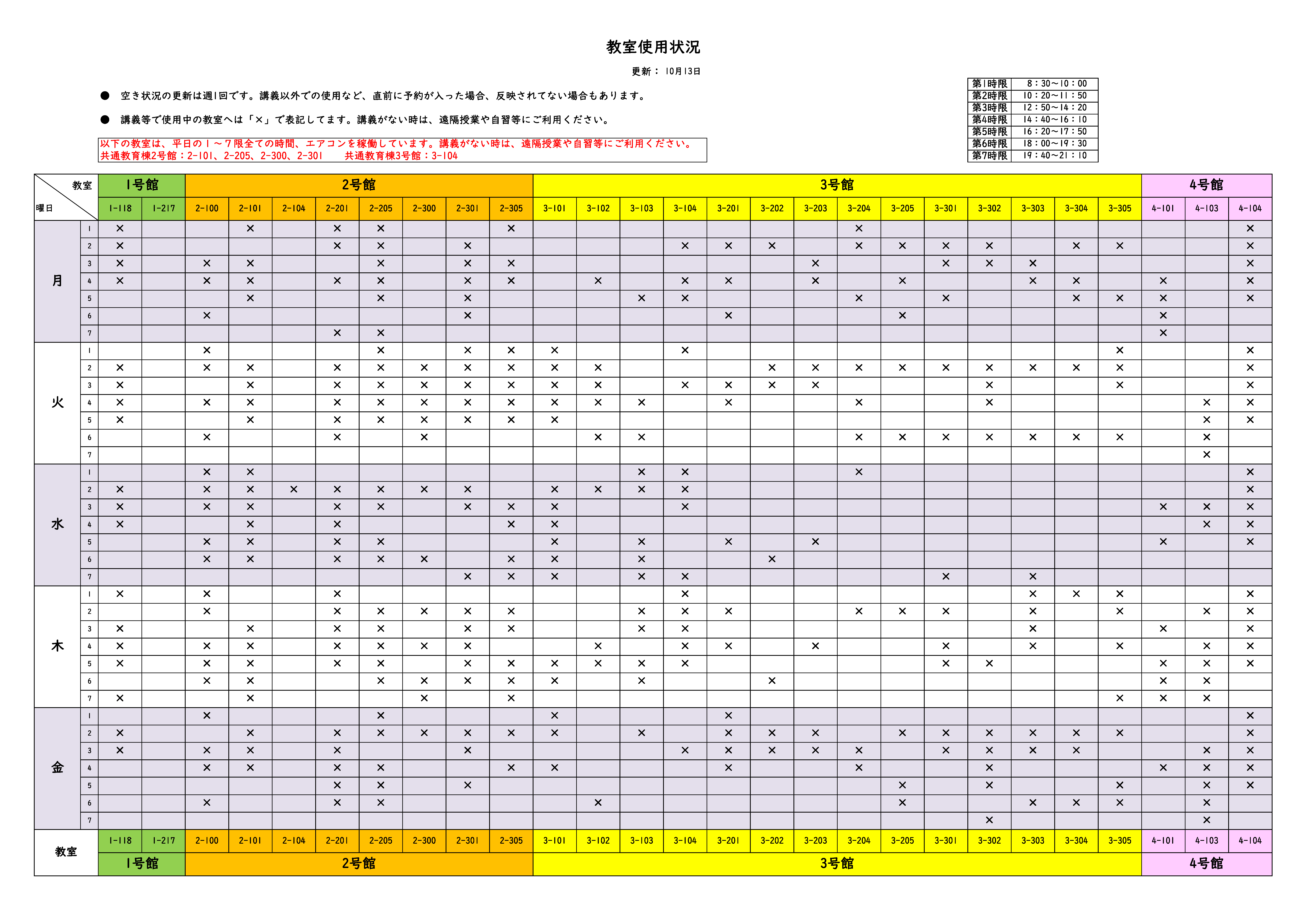 02_曜日表示【上書きで更新】空き教室一覧_231013